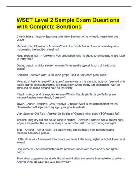 Read Online WSET LEVEL 2 SAMPLE EXAM QUESTIONS Doc