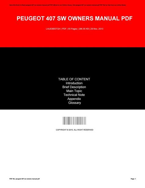 Online PDF USER MANUAL PEUGEOT 407 SW Kindle Editon ManyBooks